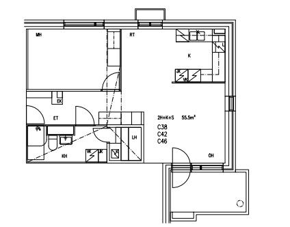 Kerrostalo, 55 m², 2h + k + s + kph + parveke