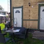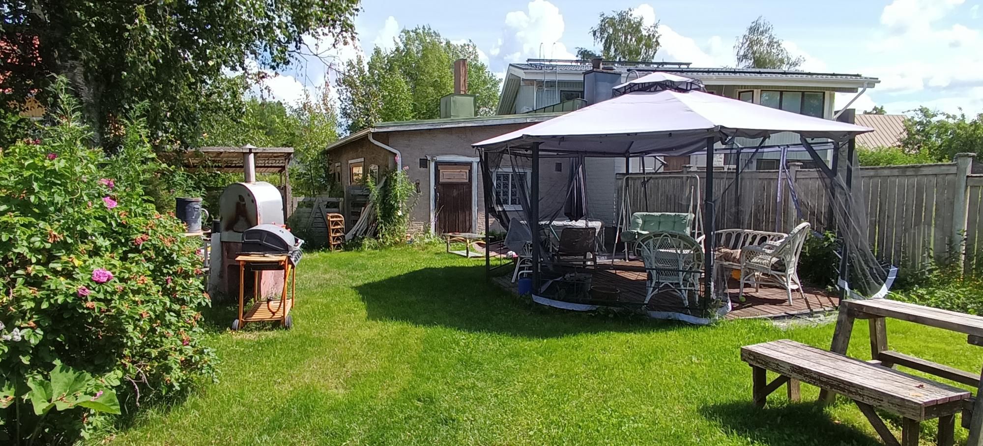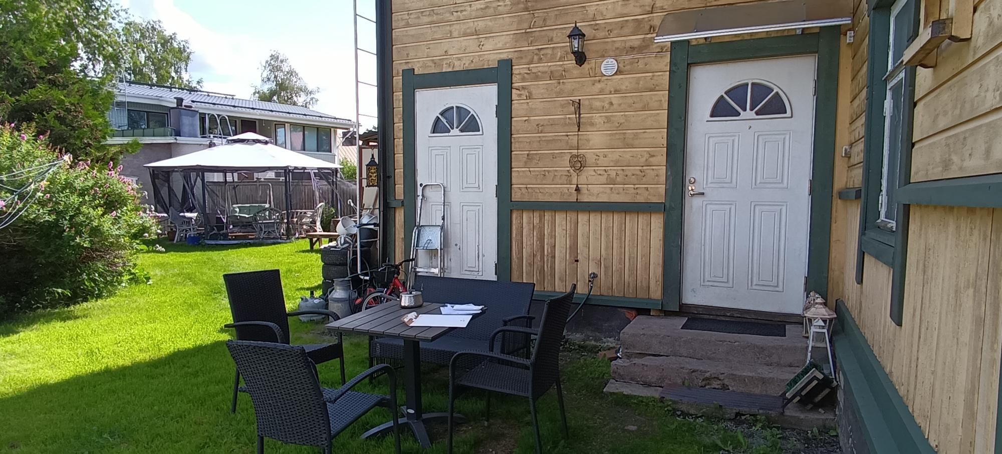 Pihapiiristä löytyy oma erillinen ulkosaunarakennus – täydellinen paikka rentoutumiseen.