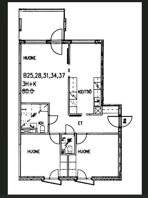 Kerrostalo, 80 m², 3h + k + kph + lasitettu parveke