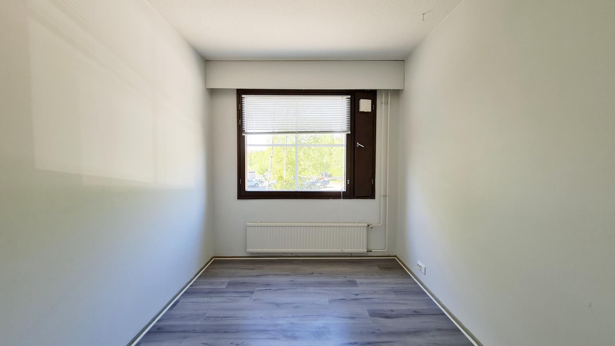 Pintaremontissa seinäpinnat maalattu, lattiapinnaksi asennettu laminaatti sekä lattialistat uusittu.
