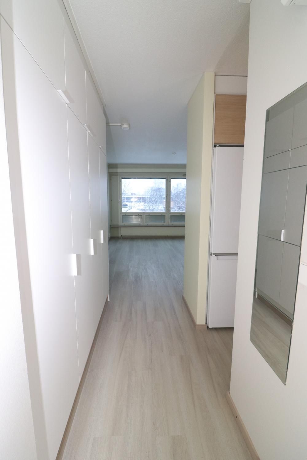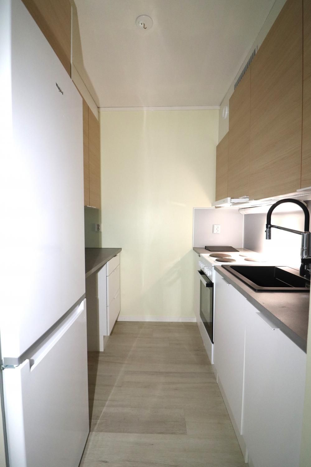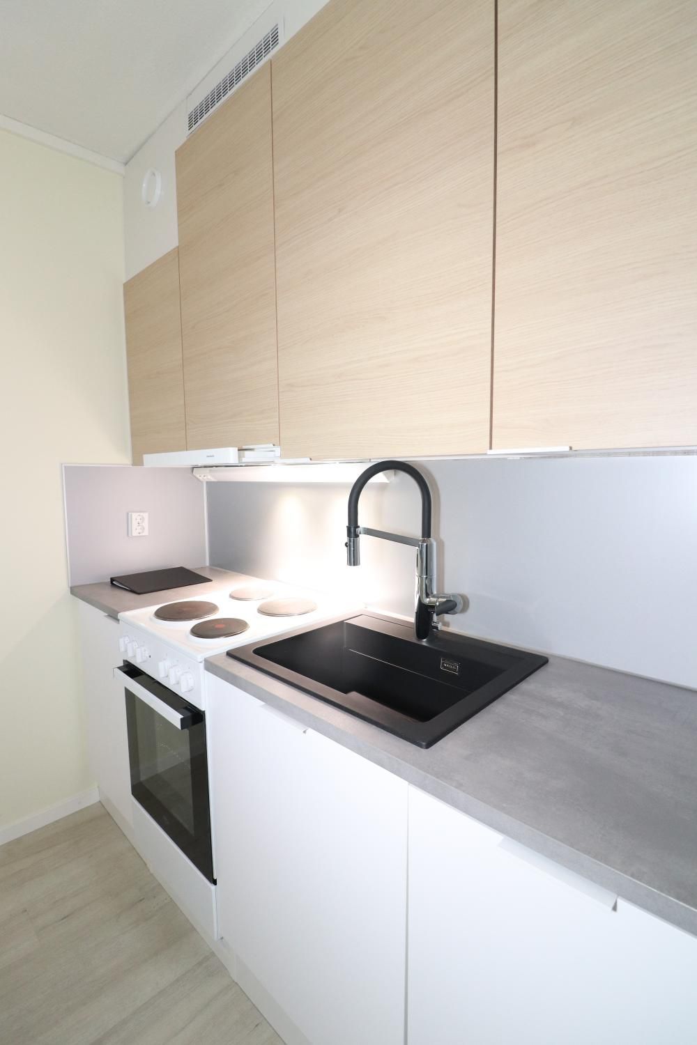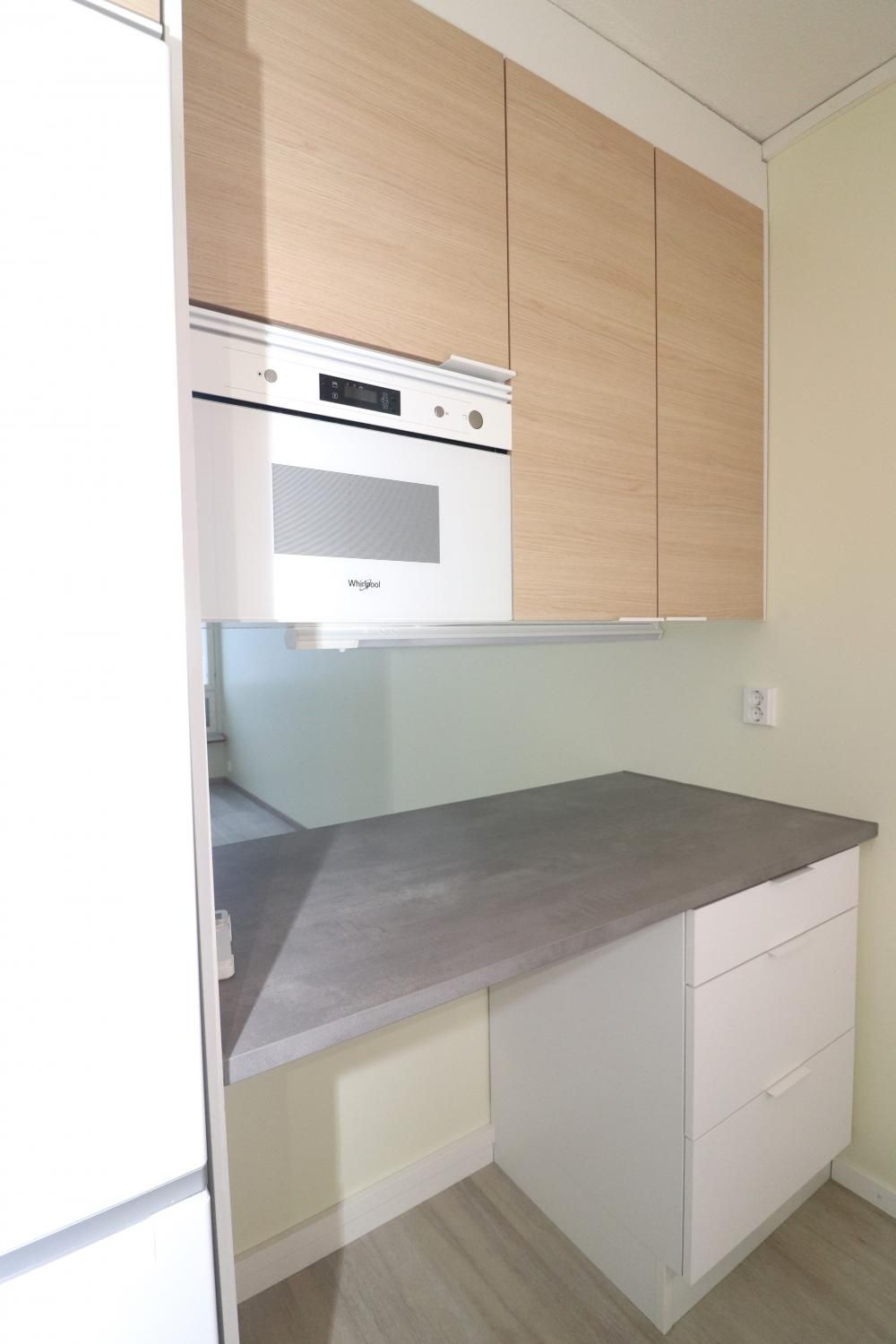 Remontoitu, reilun kokoinen yksiö loistavalla sijainnilla ydinkeskustassa. Keittokomerossa runsaasti kaappitilaa, jääkaappipakastin, liesi- ja liesituuletin, integroitu astianpesukone ja kalustemikro. Lattiassa vinyyli, seinät maalattu. Modernissa wc-kylpyhuoneessa pyykinpesukoneliitäntä ja tilaa päältä täytettävälle pyykinpesukoneelle. Viilennystä kesähelteisiin tuo viilennyspumppu. Taloyhtiössä upea sauna- ja uima-allasosasto. Vuokrataan mielellään pidemmäksi aikaa, kuitenkin vähintään vuodeksi.