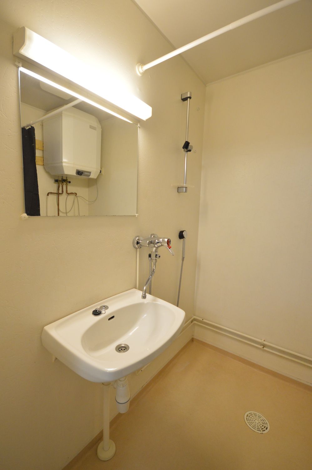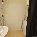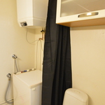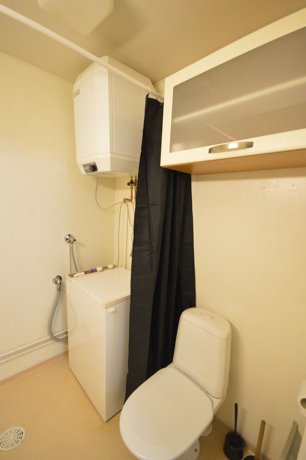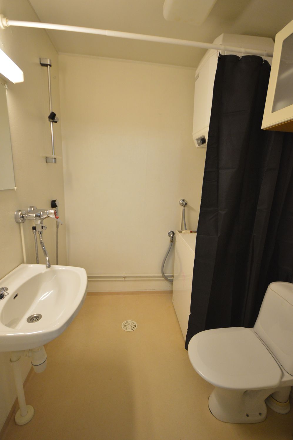 Kylpyhuoneessa on pesukone valmiina. Asuntoon kuuluu myös kaapeli-TV.