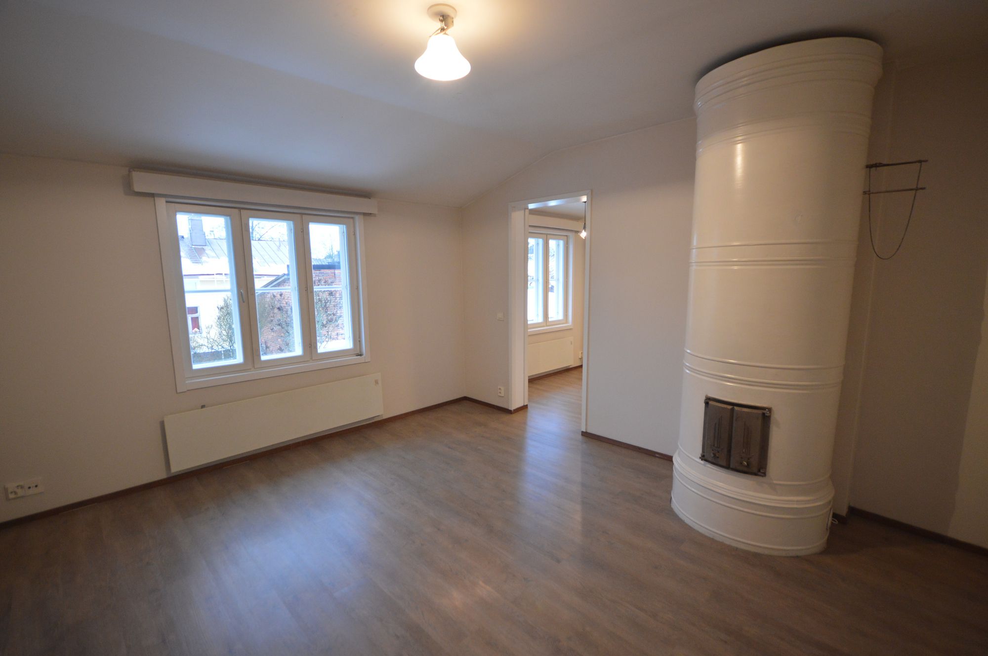 Asunnossa on sähkölämmitys, mutta tunnelmaa ja lisälämpöä tuo perinteinen pönttömuuri, jota voi lämmittää puilla. Lisäksi asunnossa on ilmalämpöpumppu (Ei näy kuvissa), mikä pitää sähkölämmityskulut maltillisina.